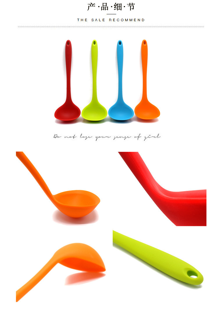 全包一體式硅膠湯勺,一體式硅膠長柄湯勺,全包硅膠大號湯勺