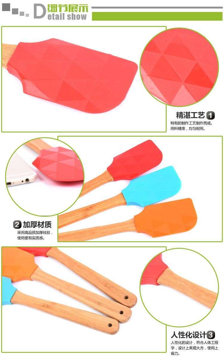 - 木柄硅膠刮刀-烘焙木柄硅膠刮刀定制廠家-東莞木柄硅膠刮刀工廠批發(fā)價(jià)格,產(chǎn)品類別:木柄硅膠刮刀材質(zhì):食品級(jí)硅膠+木柄價(jià)格段:10元以下產(chǎn)地:廣東東莞是否可加印logo:可以產(chǎn)品上市時(shí)間:2019年尺寸長度(長X寬X厚):28.5CM重量(g):65G可售顏色分別是:紅、橙、藍(lán)、綠、玫紅