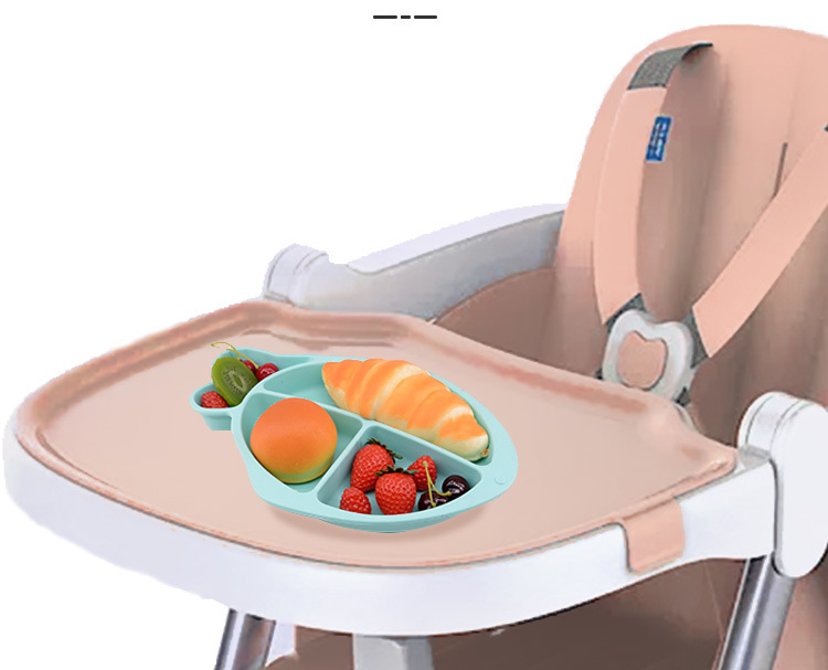 - 小魚硅膠餐盤-一體式分格吸盤防摔兒童食品級硅膠餐盤
