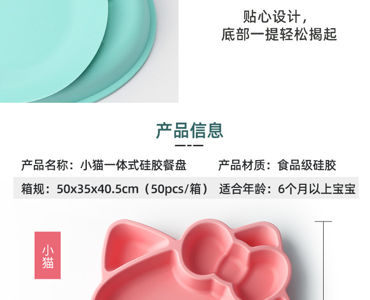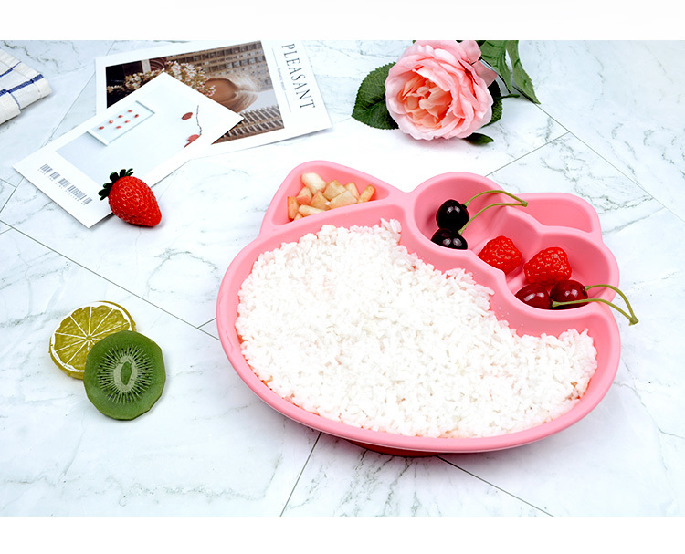 產(chǎn)品名稱:小貓硅膠餐盤 食品級兒童kt貓分格吸盤防打翻餐盤 工廠現(xiàn)模顏色多